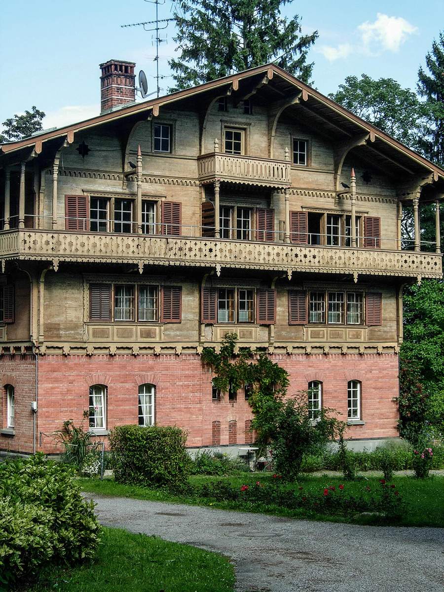 - Das Schweizerhaus im Lindenhofpark mit seinen kunstvollen Verzierungen. (c) Dietlind Castor