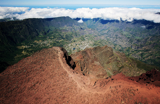 Dem erloschenen Piton des Neiges liegen üppig bewachsene Talkessel und eine einzigartige Vegetation zu Füßen. Mit seinen 3.071 Metern ist er der höchste Gipfel im Indischen Ozean.