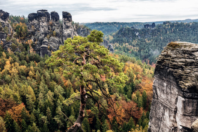 - Die bekannte Felsformation der Sächsischen Schweiz: die Bastei