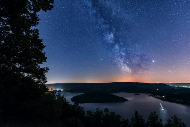 - Der Nachthimmel über dem Rursee. Hier ist die Milchstraße klar zu sehen.