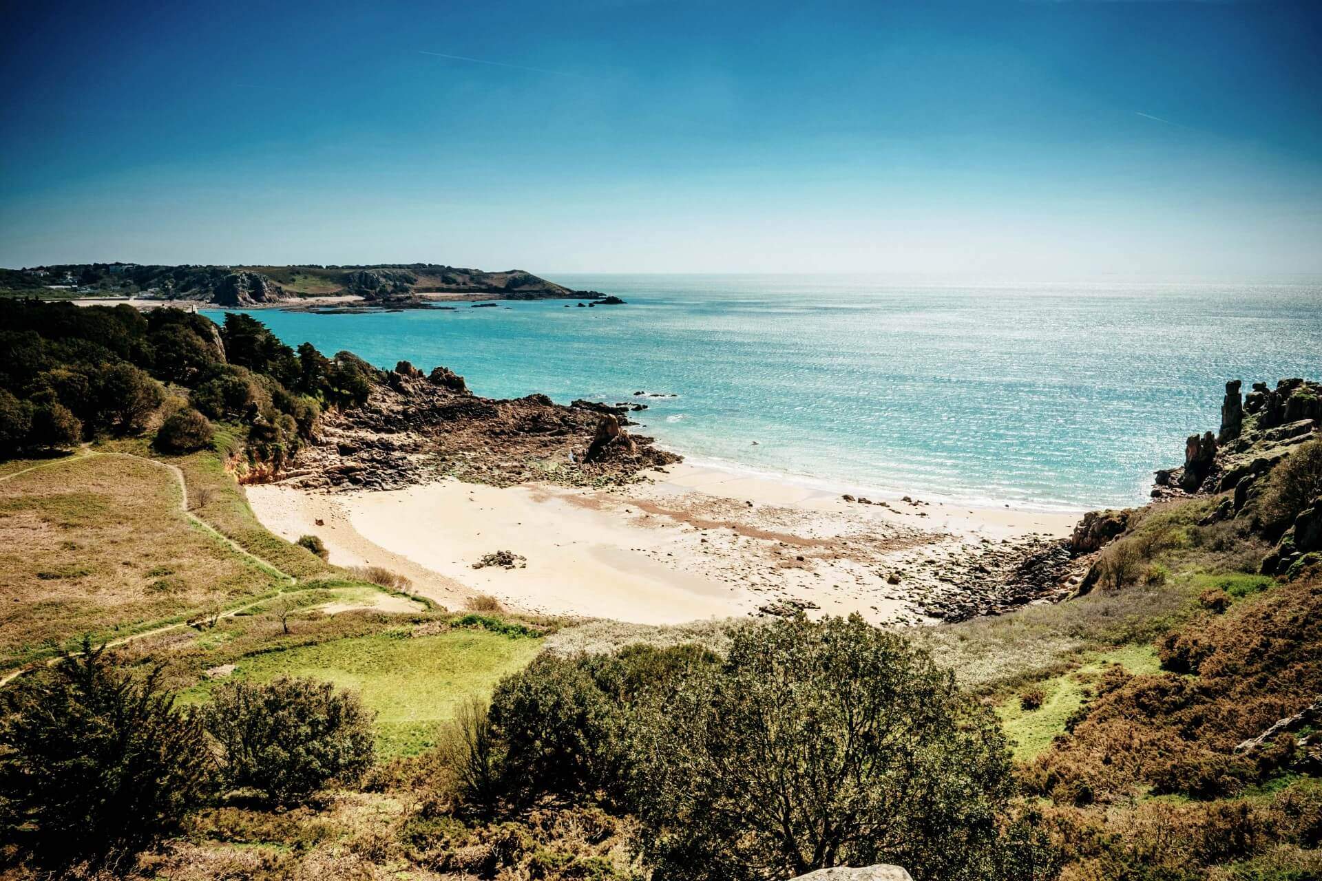Es fällt leicht, sich in die zauberhafte Landschaft Jersey‘s zu verlieben: Zerklüftete Steilküsten, lange feinsandige Strände, das grüne Inland mit einer mediterranen Blütenpracht und die kleinen Dörfer mit ihren malerischen Häfen können begeistern. Die Insel ist umgeben von tiefblauem Meer, das nirgends weiter als 15-25 Minuten entfernt ist.