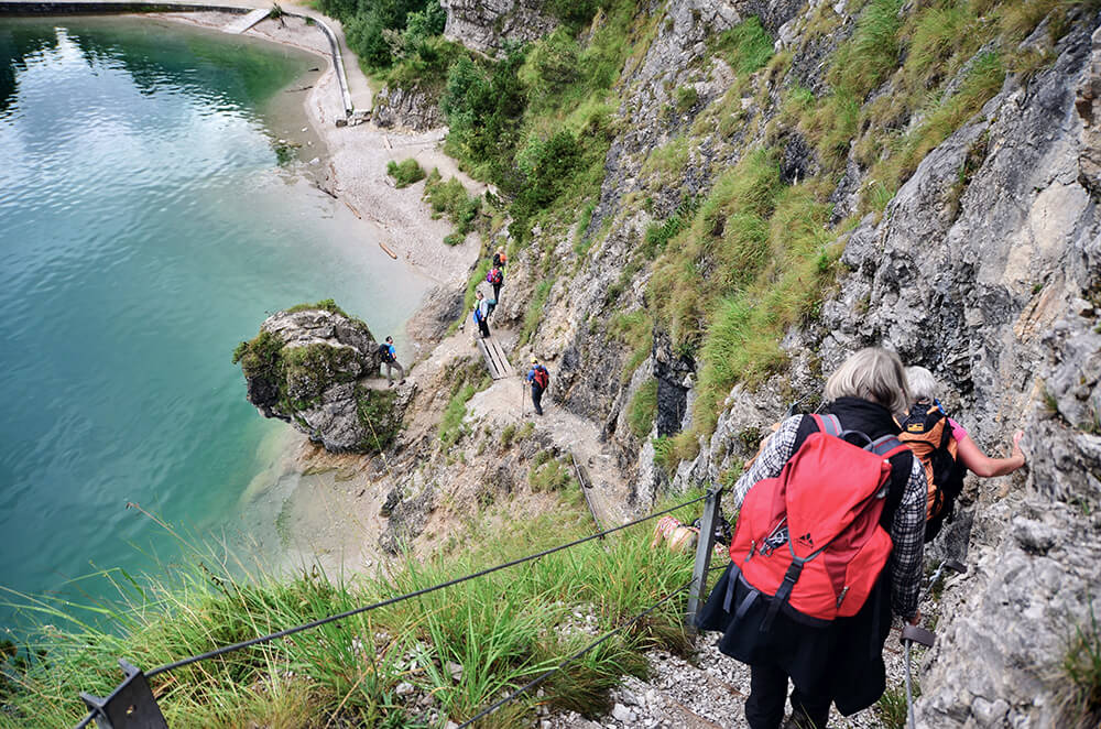 Am Folgetag ging es bedeckt, aber regenfrei am Achensee entlang, um dann am vierten Tag nochmal aufgrund der schlechten Wetterlage auf „Plan B“ auszuweichen. Selbst die Seilbahn hatte einfach mal den Betrieb eingestellt. Aber auf Daniel war Verlass, souverän ging es auf einer anderen Route mit tollen Aussichten und einem Abschluss über die „4 Almen-Tour“ weiter.