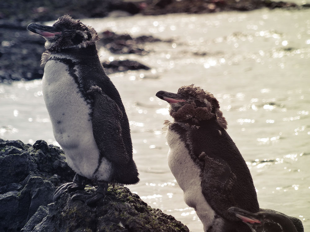 Den nächsten Tag beginnen wir mit einer Kajaktour, bei der wir schwimmenden Meerechsen, Pinguinen, Pelikanen und einer Kolonie von Blaufußtölpeln begegnen. Wir werden Zeugen davon, wie sich Hunderte von Blaufußtölpeln gemeinsam immer wieder aus der Höhe ins Wasser stürzen, um Fische zu fangen – ein wahres Spektakel.