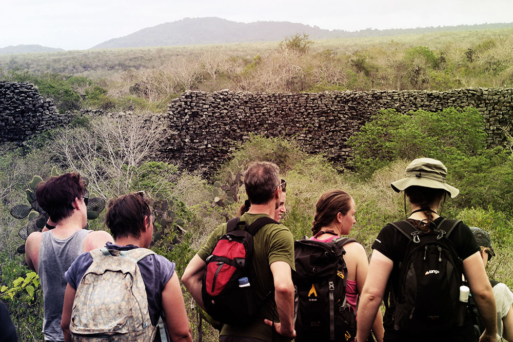 Nach einer weiteren zweistündigen Bootsfahrt erreichen wir Isabela am Nachmittag, wo wir am folgenden Tag eine regenreiche Wanderung zum Kraterrand des Sierra Negra Vulkans unternehmen. Aufgrund des häufigen Regens ist die Landschaft in den höheren Lagen sehr grün. Auf Isabela sind fünf der sechs größten Vulkane der Galapagosinseln vorzufinden. Die Insel ist geologisch sehr jung, da es immer wieder Vulkanausbrüche gibt, zuletzt 2008. Das sorgt für ein unglaublich interessantes Landschaftsbild, das auf der anderen Seite für viele Tiere unüberwindbare Hürden bereit hält. Aus dem Grund haben sich auf Isabela diverse Unterarten der Galapagos-Schildkröte entwickelt, die wir zuerst im Aufzuchtzentrum der Insel und später am Nachmittag auf einer Radtour zur „Mauer der Tränen“ in freier Wildbahn sehen. Einen Halt machen wir außerdem an einer Lagune, die von Flamingos bewohnt wird, und erfahren dort mehr zu den Tieren.