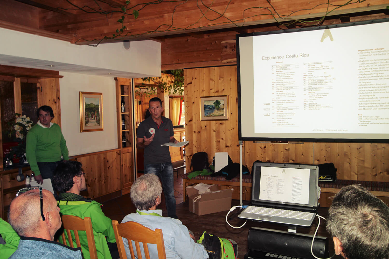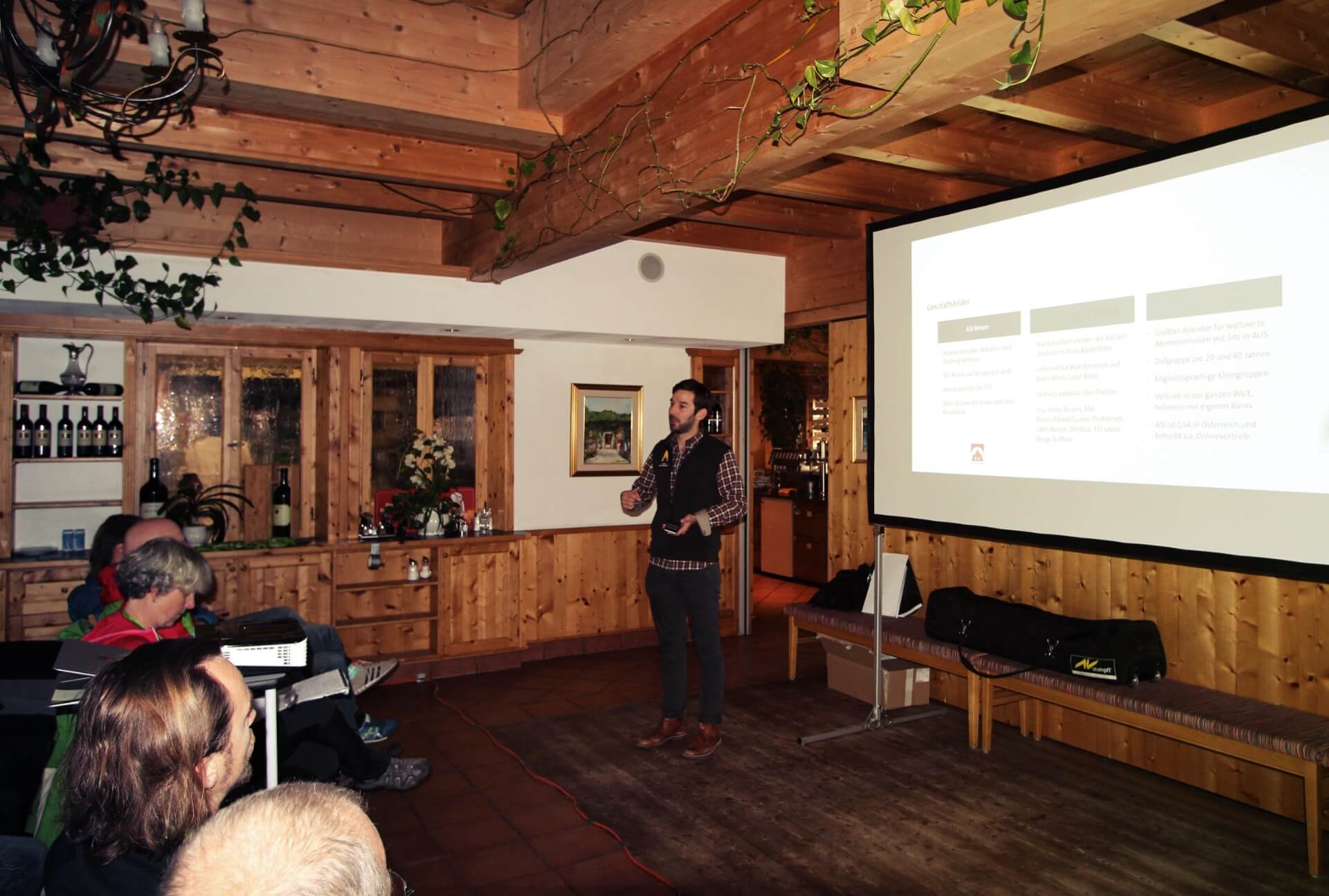 Der Samstag stand ganz im Zeichen der ASI Neuigkeiten. ASI Geschäftsführer Ambros präsentierte stolz die neuen ASI Kataloge und berichtete über Neuigkeiten aus der Welt der ASI. Die Produktmanager stellten ihre neuen Reisen vor und Jack Wolfskin Mitarbeiter Leo präsentierte die neue Kollektion. Bei verschiedenen Workshops wurden dann die neuesten Standards zu den Themen Erste Hilfe, GPS Geräte und Ausrüstung erläutert und diskutiert.