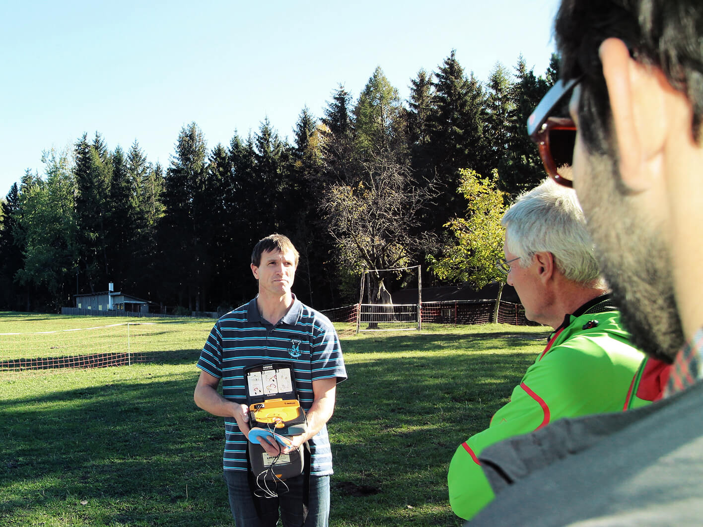 - Der Umgang mit dem Defibrillator wird geübt.
