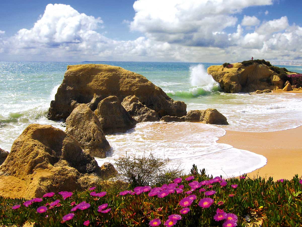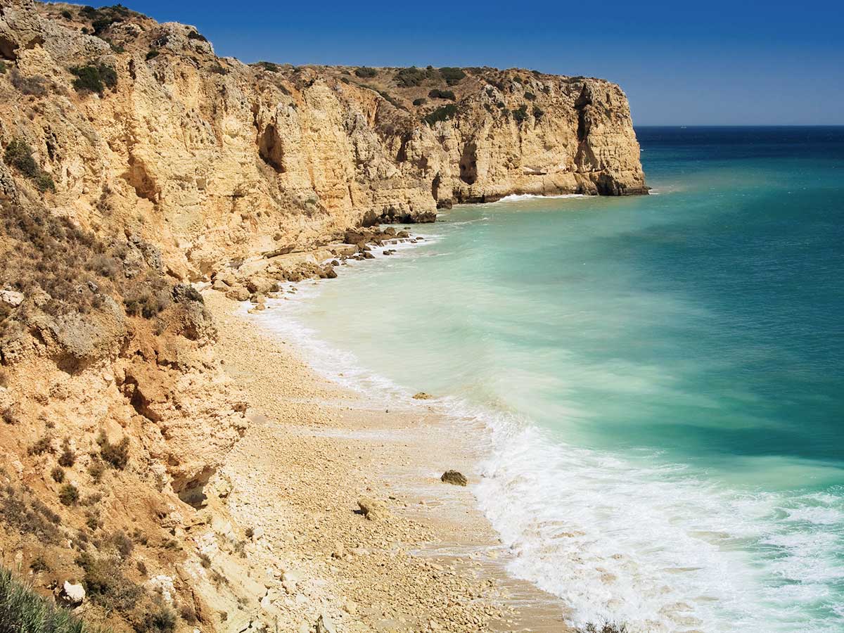 Die Weite des Atlantiks, traumhafte Sandstrände, imposante Steilküsten – das ist die Algarve, die südlichste Region Portugals. Im warmen Sonnenlicht schimmern die gelb- und rötlich braunen Kalk- und Sandsteinfelsen und kreieren eine wundervolle Stimmung. Entfernt man sich von den Küstenabschnitten in Richtung Hinterland erwartet einen ein saftig grünes Hinterland.