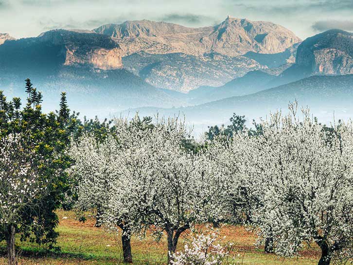 Im Februar und März hat der Winter Mitteleuropa fest im Griff und das Land liegt unter einem weißen Mantel aus Frost und Schnee. Auf Mallorca ist es ähnlich, nur der weiße Mantel besteht dort aus den Blütenblättern der Mandelbäume, die um diese Zeit blühen: der Frühling ist da! (mehr dazu im Beitrag zur Mandelblüte auf Mallorca>>>) Und dies bedeutet, dass die Wandersaison auf Mallorca eröffnet ist: noch sind die Pfade in den Bergen und Wäldern der Insel ruhig und wenig begangen.