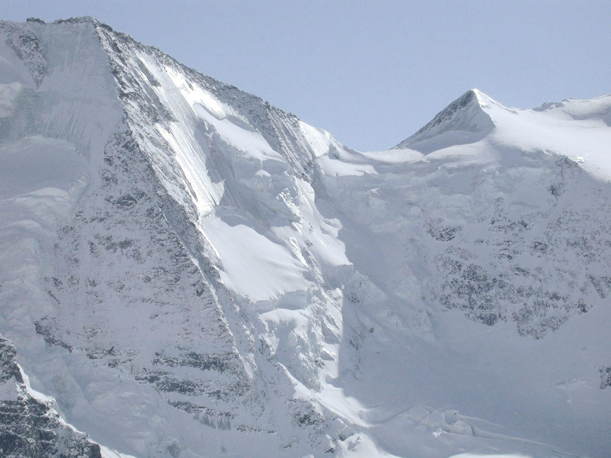 Hängegletscher können unabhängig vom Klima abreißen, wenn ihre Last zu groß wird, so wie vom Weißhorn bis Randa bei Zermatt.