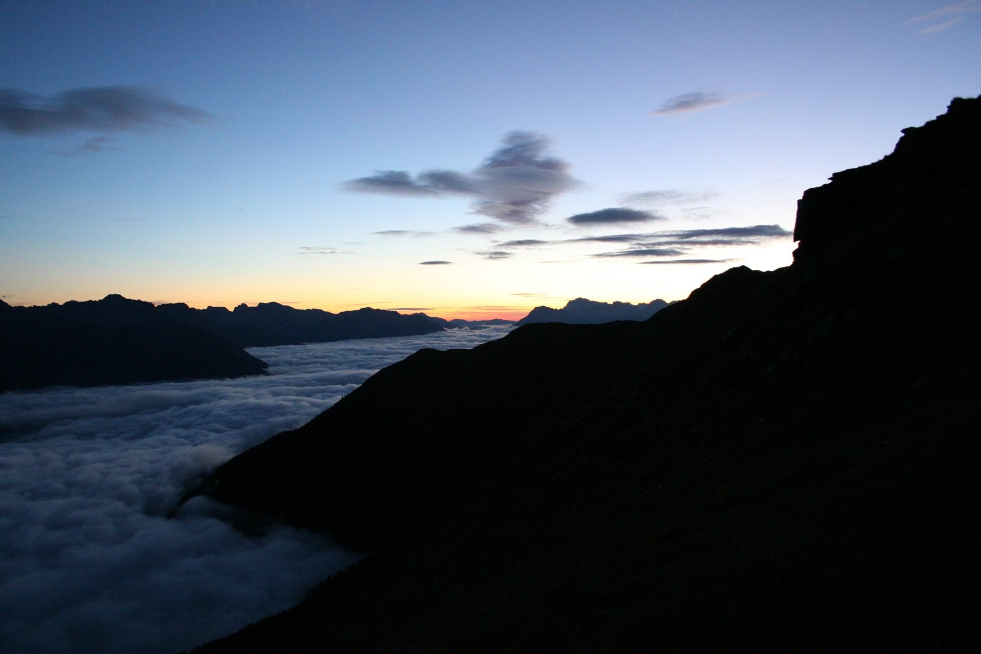 - Sonnenaufgang oberhalb des Nebels