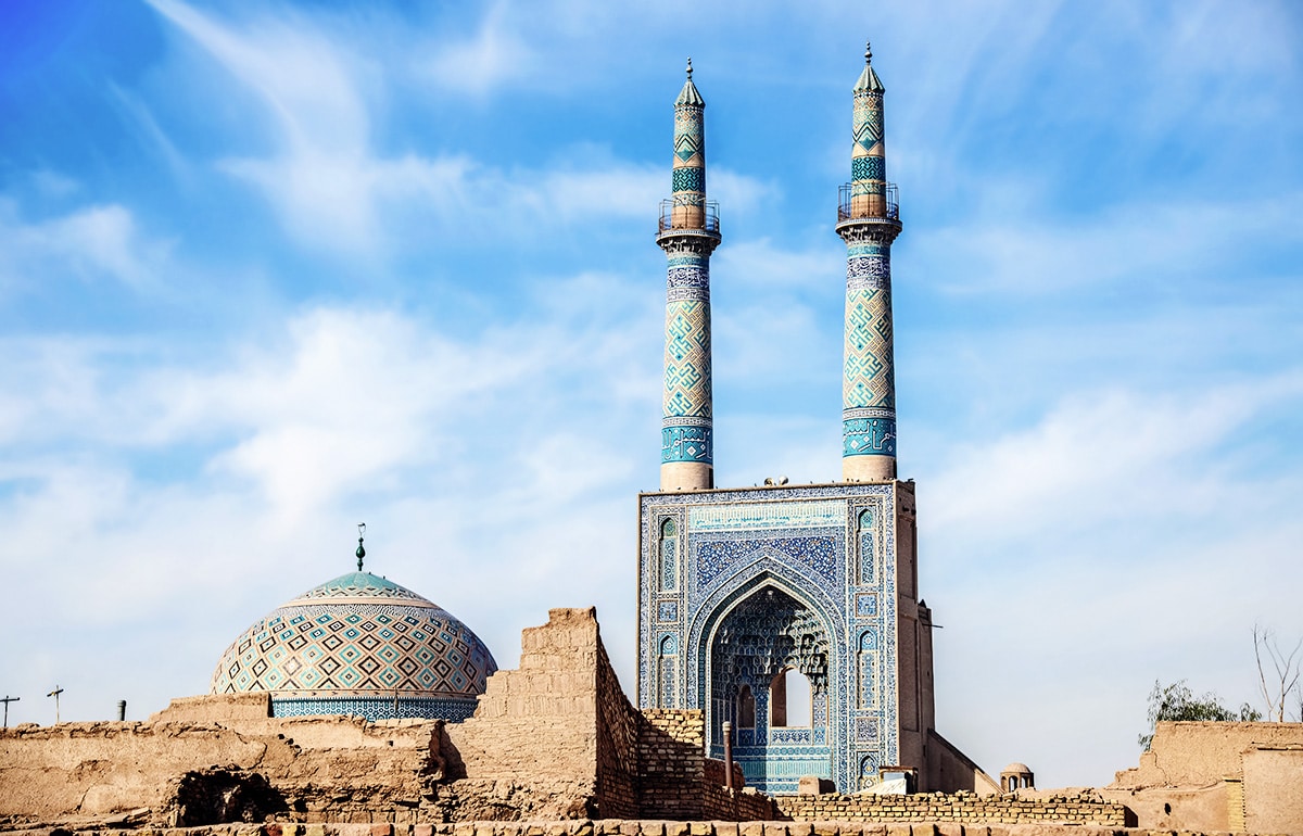 Yazd zieht nicht nur mit der Altstadt Gäste aus aller Welt in ihren Bann. Einen Blick ins „ewige Feuer“ wagt ihr im Feuertempel von Yazd, wo die Flamme anscheinend schon seit 1.500 Jahren vor sich hin flackert – dem Glauben der Zoroastrier zufolge. Yazd gilt als bedeutendes Zentrum für die zoroastrische Glaubensrichtung im Iran. Die Türme des Schweigens etwas außerhalb des Stadtzentrums sind ebenfalls architektonischer Beweis dafür. Einst dienten sie als Beerdigungsstätten der Parsen, mittlerweile sind sie eine bedeutende Sehenswürdigkeit für Reisende aus aller Welt. Die Freitagsmoschee von Yazd gibt einen beeindruckenden Einblick in die Mosaik-Künste der alten Perser: über und über mit blauen Fliesen verziert ist sie ein berühmtes Fotomotiv. Die beiden Minarette bei der Moschee sind die derzeit höchsten im ganzen Iran.