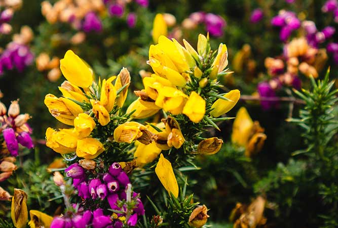Der goldene Oktober macht auch in Irland halt und verwandelt die grüne Insel in sanfte, orangegelbe Töne. Unterbrochen werden die gedeckten Farben von knallgelben Ginsterbüschen, pinken Fuchsien und lilafarbenen Heideblüten. Morgens hängt der Nebel noch in den Gipfeln, was zur mystischen Stimmung beiträgt.