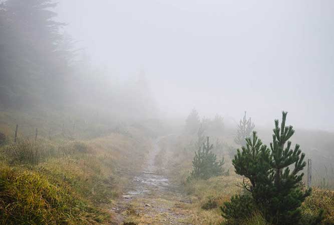 - Tief hängende Wolken verbreitet eine mystische Stimmung.