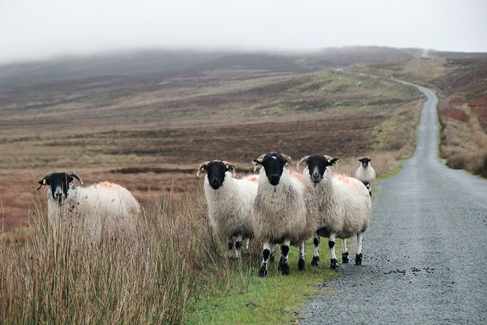Auf der Suche nach menschenleeren Regionen und wilder Natur dürfen wir in Europa auch an Irland denken. Mit seinen derzeit rund 4,5 Millionen Einwohnern (65 Einwohner pro Quadratkilometer) zählt der Inselstaat nicht unbedingt zu den dicht besiedelten Gebieten in Europa. Zumindest was die Einwohner betrifft. Wenn es um das Verhältnis Schaf-Mensch geht, ist die Besiedelung etwas straffer (1,23 Schafe pro Bewohner). Nur Island hat innerhalb Europas noch mehr wollige Tiere im Angebot. Die Schafe gehören zu Irland wie das Meer zur Insel. Oder wie die Kartoffel zum irischen Landwirt.
