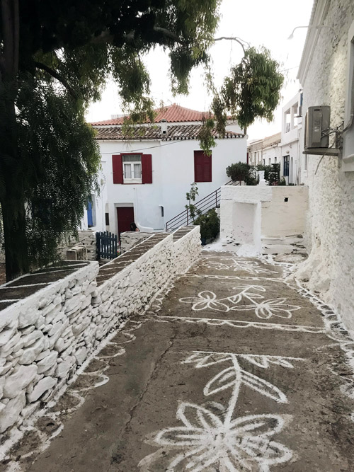 - Im Zentrum von Chora stolpert man über verzierte Straßen…