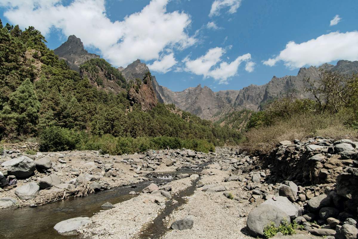 Wenn man auf La Palma ist, darf eine Wanderung in der Caldera de Taburiente nicht fehlen. Die Caldera ist der größte Implosionskrater der Welt und wo einst ein Vulkan von über 3.000 Metern in den Himmel ragte, ist jetzt ein Nationalpark, der unter Naturschutz steht. Es gibt verschiedene Wandermöglichkeiten. Wir entschieden uns für Los Brecitos als Ausgangspunkt unserer Wanderung. Von dort aus geht ein Pfad bergab, der uns immer wieder Blicke über die Caldera bis hinunter in die Schlucht, aber auch bis rauf zum Calderarand schenkte.