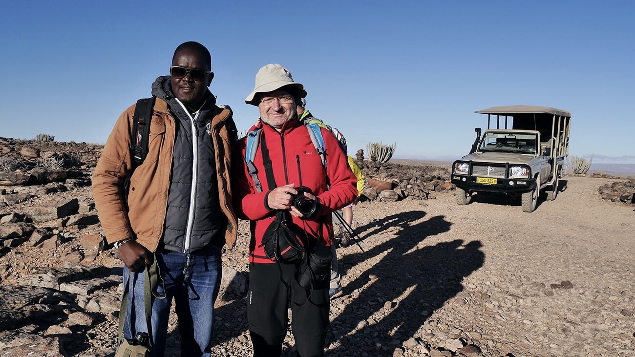 Unserem Reiseleiter Harold gilt ein besonderer Dank. Er ist flexibel, umsichtig und seine ruhige Art hat sich wohltuend auf die Gruppe ausgewirkt. Außerdem ist er ein sehr guter Autofahrer. Er hat es auch verstanden die langen Fahrten aufzulockern, indem er auf humorvolle Weise über die Traditionen und Rituale seines Stammes, der Herero, berichtet hat. Einfach ein super Guide.