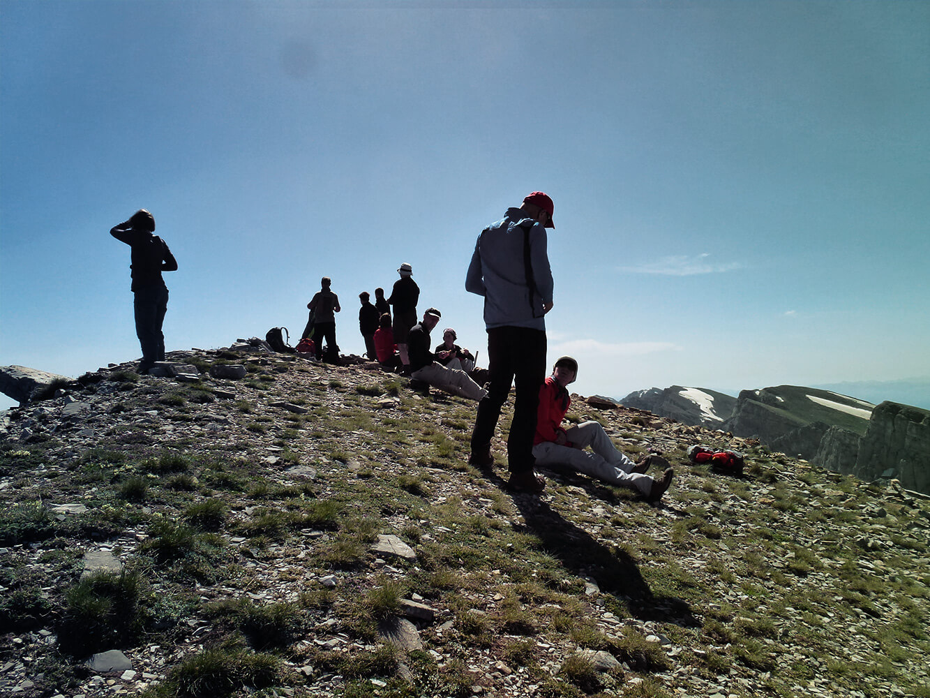 Die nächsten Tage waren geprägt von Schlechtwetter – der griechische Wettergott meinte es nicht gut mit uns. So mussten wir ausgerechnet am Zustiegstag zur Spilios Agapitos Hütte einen Wetterumschwung hinnehmen. Gewitter, Sturm & Hagel erschwerten uns den Aufstieg. Den Göttern des Olymp sei Dank, dass die herzliche Hüttenwirtin Maria uns mit leckeren Nudeln, griechischem Yoghurt mit Honig und schmackhaftem Rotwein bei Laune hielt. Wir wollten nichts unversucht lassen und starteten am nächsten Tag trotzdem einen Gipfelversuch. Leider mussten wir diesen nach 20 Minuten abbrechen, da die Gewitter doch zu nah waren und in den Bergen das Wetter siegt. Der Plan B: statt Gipfelsieg stiegen wir ab nach Prionia und gönnten uns ein leckeres Essen im besten Restaurant von Litochoro und anschließend einen geselligen Ausklang im “Dorf mit Herz”.