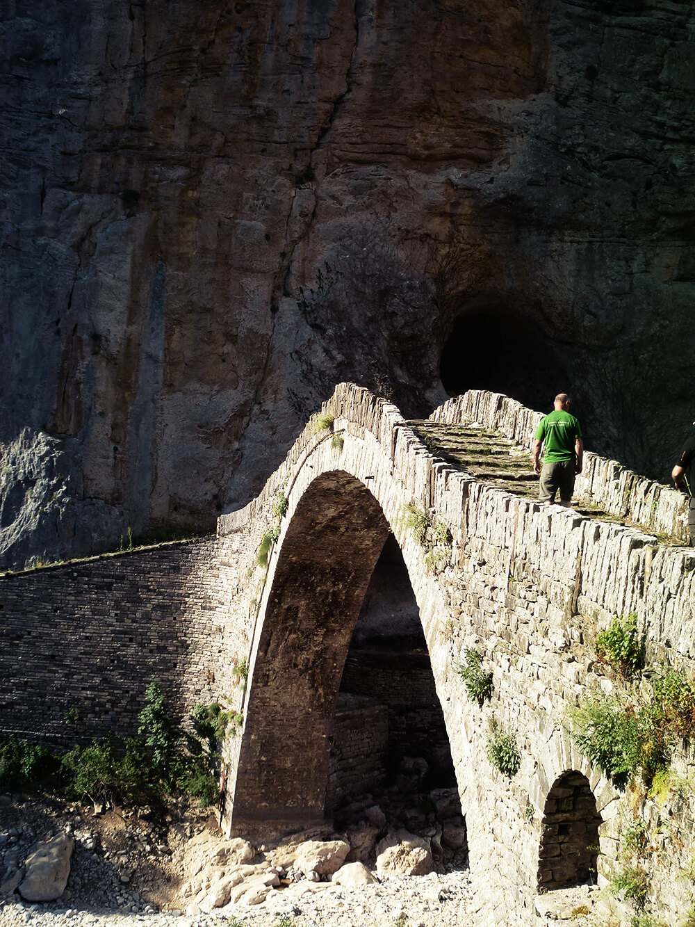 Auf abenteuerlichsten Wegen führte uns der Transfer von Vikos nach Mikro Papigo, der dem Fahrer Georgis viel Fingerspitzengefühl abverlangte. Haarnadelkurven und eine Steinbrücke – gefühlt schmaler als der Bus – galt es zu meistern. Georgis zeigte, dass er seinen Bus beherrscht und brachte uns sicher zum Ausgangspunkt zur Astraka-Hütte (Drachensee Hütte).