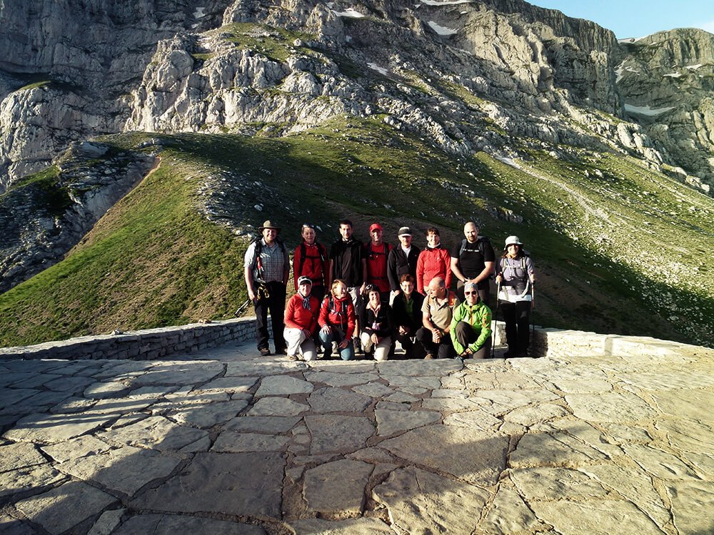 Auf der Fahrt von Metsovo nach Kalambaka wurden wir von Werner gut auf die Meteora Klöster eingestimmt. Wir erlebten so einen unvergesslichen Tag bei insgesamt 4 Klöstern mit einer Mischung aus Wandern und Kultur, gespickt mit Highlights wie der „Hippie-Höhle“, dem Chachacha-Abstieg eines Gastes und dem Pfad durch die Felsen. Am nächsten Tag sollten wir schon am Fuße unseres Reisezieles ankommen – in Litochoro schlugen wir unser “Basislager” im gemütlichen Hotel Olympos Mediterranean auf.