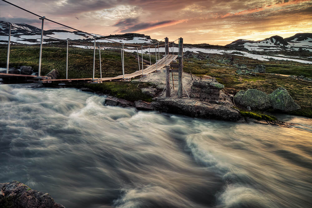 - Auf der Wanderung zum Hardangergletscher wird diese Brücke überquert.