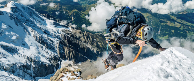 Wie ein Profi machst du dich auf den Weg. Viertausender zu besteigen ist kein Kinderspiel. Für die richtige Trittsicherheit, Sicherheit vor Steinschlag und mehr, unterstützt dich dieses Equipment speziell bei Hochtouren.