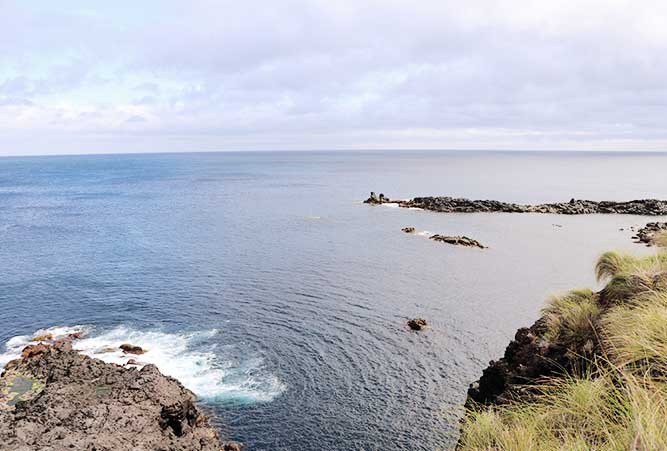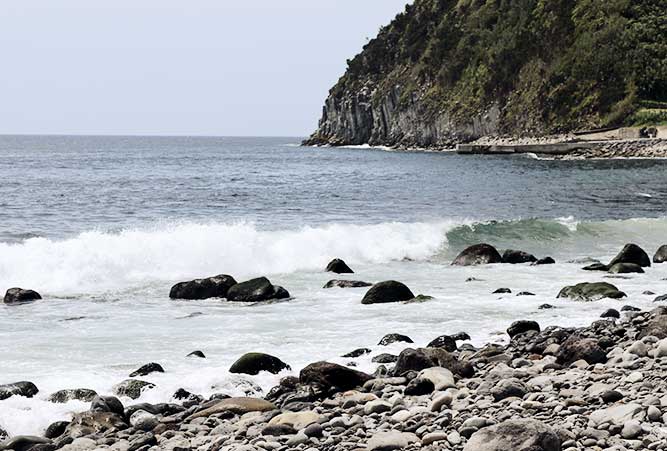Der Vorteil einer individuellen Reise ist, dass man das Programm kurzfristig ändern kann. An diesem Tag hatten wir eine Wanderung zum Feuersee Lagoa do Fogo geplant. Das Wetter war allerdings wieder sehr verregnet und nebelig. Deshalb entschlossen wir uns, das heutige Programm zu tauschen. Also stiegen wir kurzerhand in den Mietwagen und fuhren an der wunderschönen Nordküste entlang. Die Straßenränder wurden links und rechts von Hortensiensträuchern und grünen Wiesen geziert.