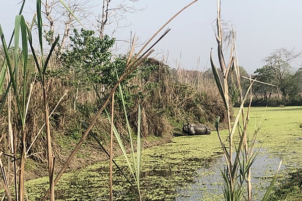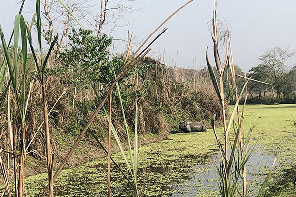 In der Safari Narayani Lodge angekommen, gibt es nach dem Mittagessen den ersten Programmpunkt. Ich werde den Elefanten vorgestellt und im Anschluss zeigt mir Guide Ogit das traditionelle Tharu Dorf. Ich erfahre viel über die Kultur dieser ethnischen Gruppe. Ogit erklärt mir alles über die zwitschernden Vögel auf dem Weg. Abends bekomme ich ein üppiges „Dinner for one“, wo ich mich wie bei Tischlein deck dich fühle. Pappsatt falle ich ins Bett.