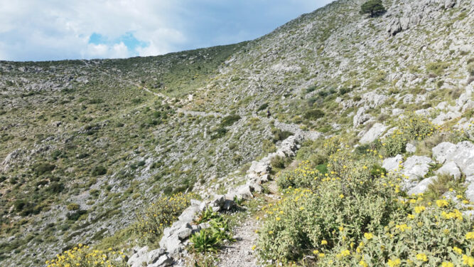Der Abstieg vom Eros führte uns in abgelegenes Bergland. Wir vergaßen fast schon, dass es auch noch andere Menschen auf der Insel gibt, bis uns ein nach traditioneller Manier gesatteltes Maultier brav stapfend überholte. Auf seinem Rücken schaukelte gemütlich ein junger Hydriote – stets mit Blick auf sein Smartphone. Tradition und High-Tech scheinen hier friedlich zu koexistieren.
