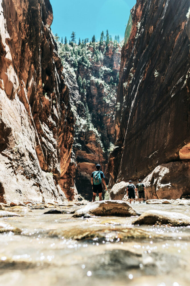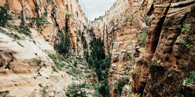 Auf dem Bild oben siehst du eine weitere Besonderheit des Zion-Nationalparks: den Subway. The Subway ist ein kleiner, einzigartig geformter Slot-Canyon innerhalb der Zion Wilderness im Zion-Nationalpark. Als Slot-Canyon werden Schluchten bezeichnet, die durch fließendes Wasser entstehen. Diese kunstvoll geformten Schluchten sind typisch für die Gegend, da die lockeren Gesteinsschichten und das trockene Klima beste Voraussetzungen für deren Entstehung bieten.