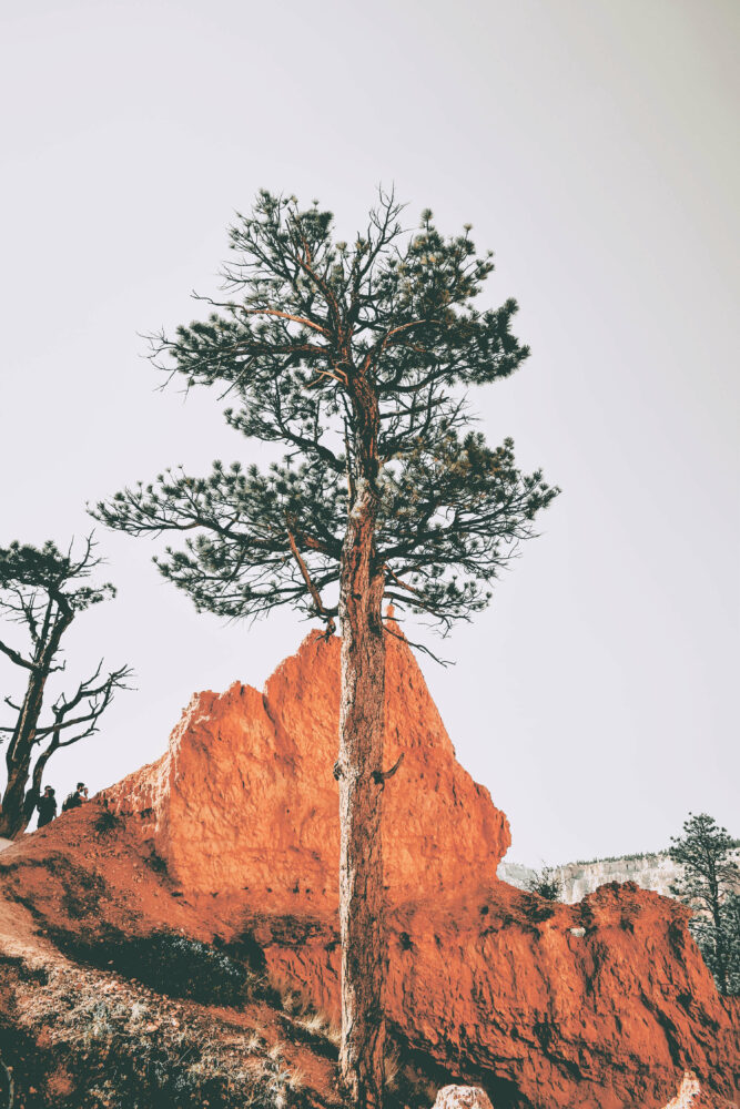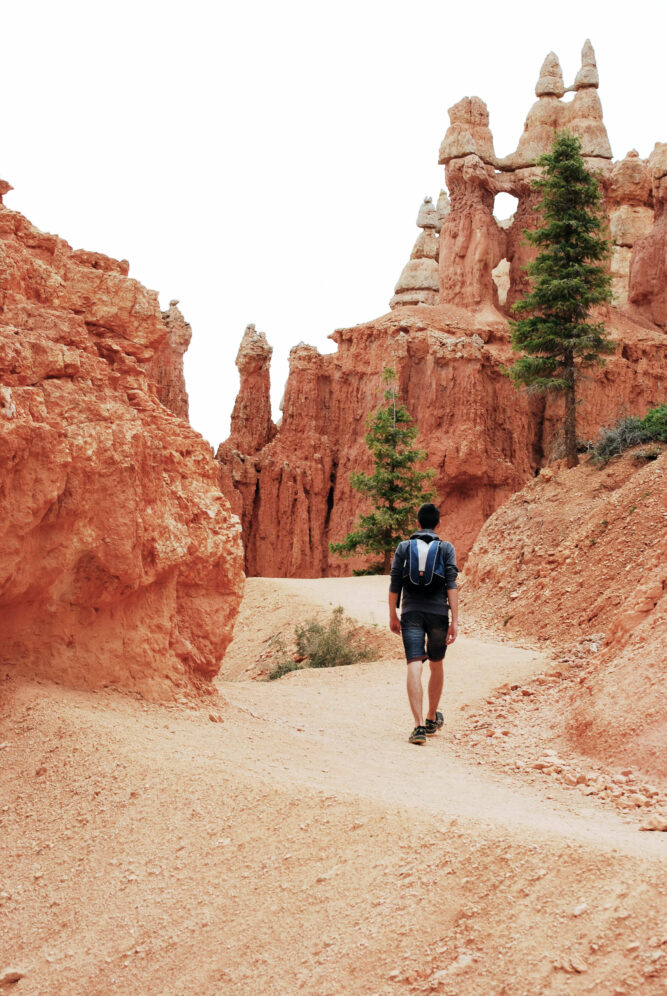 Diese turmartigen, durch Erosion entstandenen Steingeblide werden Hoodoos genannt und sind ein kennzeichnendes Bild für den Bryce-Canyon-Nationalpark. Die von Rot- und Ockertönen geprägte Felslandschaft verzaubert auf ganz besondere Weise, denn die fantastischen Ausblicke auf die bis zu 60 Meter hohen, nadelförmigen Felsgestalten sind befremdend und faszinierend zugleich. Sie sehen beinahe aus wie riesige Männer, die über den Canyon wachen.