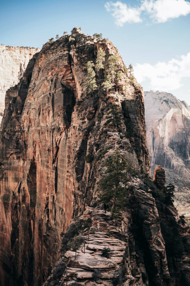 Für Bergbegeisterte ist der Angels Landing, der meistbestiegene Berg im ganzen Park, außerdem einen Besuch wert. Die Felsformation ist circa 1765 Meter hoch und kann bestiegen werden. Lies dazu gerne unseren Blogbeitrag “Angels Landing: Wandern im Zion-Nationalpark“, in dem du mehr über diesen besonderen Ort erfahren kannst.