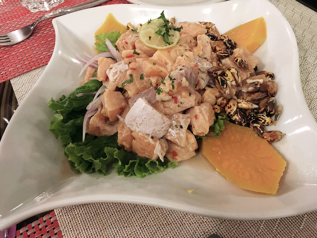 - Ceviche: eine Spezialität in Peru.