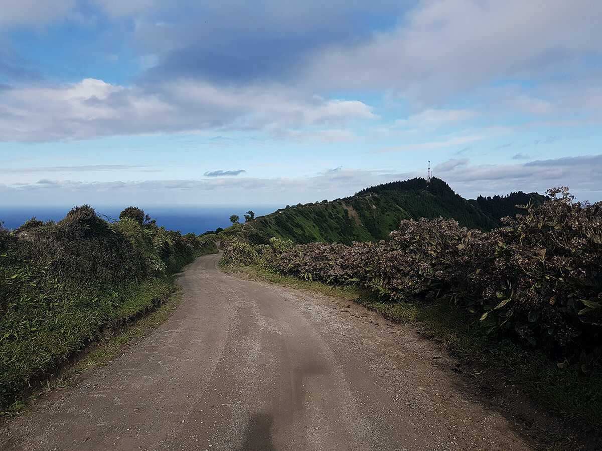 Ich könnte ein ganzes Buch über die Reise schreiben, möchte den Reisebericht jedoch auf einen der vielen Höhepunkt beschränken: den berühmten Ort Sete Cidades mit seinen beiden Seen Lagoa Azul und Lagoa Verde, welche genaugenommen nur ein See sind und mittels eines Kanals verbunden sind. Dass die beeindruckende Kraterlandschaft in keinem Reiseführer fehlen darf, zeigen bereits die ersten Ausblicke vom Vista do Rei, dem Ausgangspunkt unserer Wanderung. Und der Blick in die Caldeira war wie der Name schon erahnen lässt, königlich und die Landschaft surreal schön: während die Reflexion des Lichtes den einen See blau (Lagoa Azul) erscheinen lässt, scheint der andere (Lagoa Verde) aufgrund der reichen Vegetation grün zu sein. Nach unzähligen vielen Fotos begaben wir uns schlussendlich auf den Weg, Teile der Caldeira zu umrunden. Jeder Schritt war ein Fest für die Sinne: duftende Hortensien, eine Ruhe, die den Alltag vergessen ließ und ein Panorama, von den Kraterseen bis zur Meeresküste, welches unsere Herzen höher springen ließ. Unsere Augen waren hin und hergerissen, mal zum Meer, mal in die Caldeira gerichtet. Die ca. 3 Stunden andauernde Wanderung verging dabei wie im Flug. Anzumerken ist, dass der Weg entlang des Kraterkammes relativ breit und problemlos zu begehen ist. Einzig der Abstieg vom Kraterrand hinunter zum Dorf Sete Cidades ist etwas steil und steinig, für jeden Wanderer mit etwas Wandererfahrung jedoch leicht zu meistern.