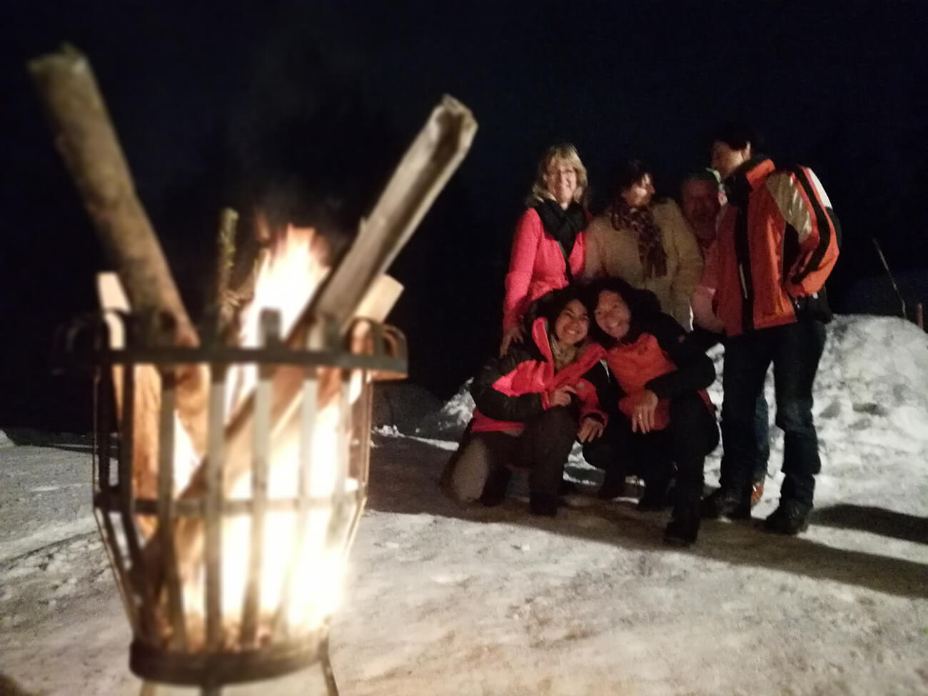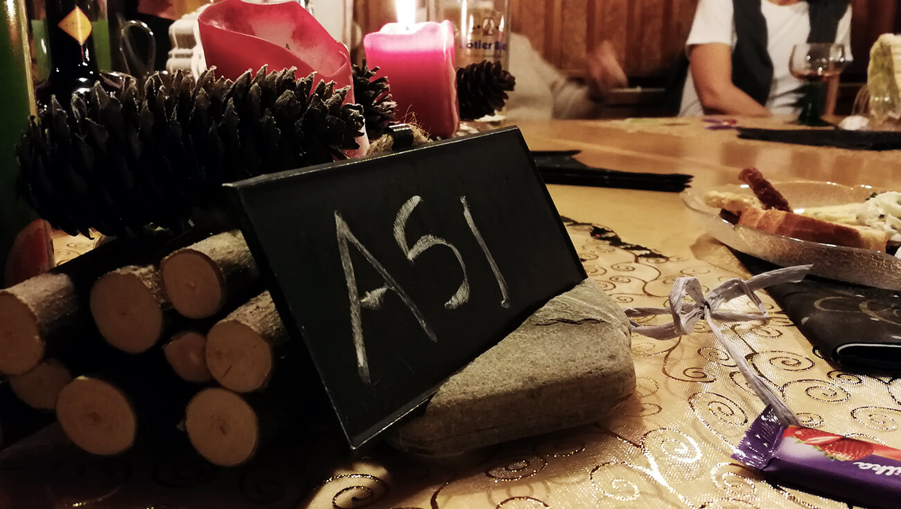 Fürs Silvestermenü legten sich die Hüttenwirte des Berghaus Schwaben besonders ins Zeug und schmückten die gemütliche Hütte festlich. Ebenfalls nicht fehlen bei der Silvesterreise im Allgäu durfte eine kleine Einheit an Lawinenkunde, bei der mit LVS-Gerät, Lawinenschaufel und –sonde von ASI Ausrüstungspartner Pieps für den Notfall geprobt wurde.