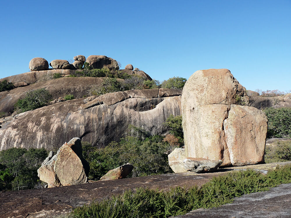 Ein überwältigendes Schauspiel, das wir eine halbe Stunde genießen bevor wir uns wieder ganz langsam und dicht aneinander gedrängt zurückziehen. Noch nie bin ich zu Fuß einem Nashorn so nahe gekommen – ein für mich unvergessliches Erlebnis. In den Nationalparks Afrikas werden einige geführte Nashornwanderungen in Begleitung von erfahrenen Naturführern und bewaffneten Rangern angeboten. Auch im Hwange Nationalpark (Zimbabwe) gibt es die Möglichkeit, durch den Busch zu wandern und Wildtiere aus einer ganz anderen Perspektive zu beobachten als vom Landrover aus. Dieser unmittelbare Kontakt zur Natur macht eine Reise zu etwas ganz Besonderem. Aber nicht nur die Tierbeobachtungen haben mich in Simbabwe fasziniert. Die verschiedensten Landschaftsformen wie z.B. die Eastern Highlands und das üppig grüne Honde Valley bieten ebenso wie die eigentümliche, von riesigen Steinbouldern geprägte Landschaft des Matopos Nationalparks eine herrliche Wanderkulisse. An den mächtigen Victoriafällen ziehen die Urgewalten der Natur den Besucher in ihren Bann. Mit ohrenbetäubendem Getöse stürzen hier die Wassermassen des Zambesi über 100 m in eine enge Schlucht.