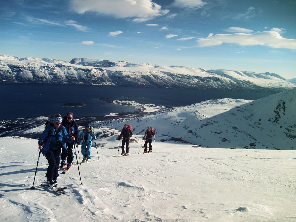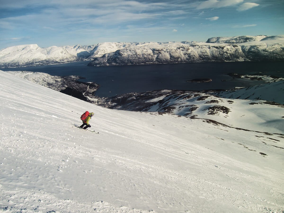 Die Lyngen Alpen gehören zum Skandinavischen Gebirge und bieten eine unglaubliche Vielfalt an Skitouren. Spannend ist natürlich, dass der Einstieg für einige Touren nur mit der Fähre erreicht werden kann – ein ganz anderes Erlebnis, als eine Skitour bei uns in Mitteleuropa. Außerdem macht die Freundlichkeit der Norweger es einem leicht, sich sofort wohl zu fühlen. Es kommt sogar manchmal vor, dass die Fischer einen Kübel Shrimps gegen eine Dose Bier tauschen.