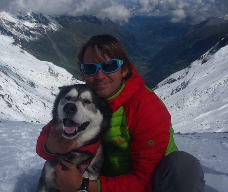 Bergführer Wolfi mit seinem Malamut Iluk