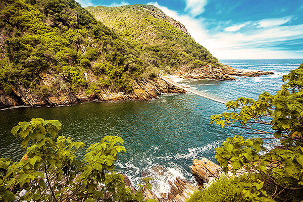 An der Mündung des Storm Rivers befindet sich der aus einem felsigen Küstenabschnitt und einer Bergregion bestehende Nationalpark. Geprägt von tiefen Schluchten, Flüssen und Wäldern, kannst du umgeben von tosenden Wellen oder uralten Bäumen mit etwas Glück Antilopen, Affen, Vögel, Delfine und Wale zu Gesicht bekommen. Größter Anziehungspunkt ist die 77m lange Suspension Bridge, auf der du umgeben von steilen Felswänden rund 7 m hoch über dem Storms River schwebst.