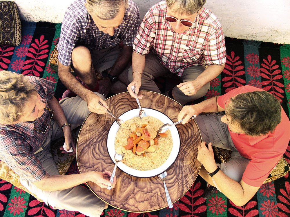 Bei allen Marokko-Reisen erhalten wir Einblicke in die Lebensweise der Berber und halten an, für eine traditionelle Teezeremonie. Bei der Reise „Marokko – Atlas Gebirge“ sind wir im Tal der Berber und kehren beim Dorfältesten ein. Er schlendert mit uns durch sein Dorf, erzählt uns Geschichten und zeigt uns stolz den gepflasterten Weg, den er mit den Einnahmen der ASI-Teezeremonie anlegen konnte. Dieser Ausflug ist auch eine einmalige Gelegenheit die Sprache der Berber zu hören, denn der Dorfälteste spricht nur Berber. Übersetzt wird dann von Bergwanderführer David Scholl, der neben seiner Muttersprache Deutsch auch die Sprache der Berber beherrscht. Der krönende Abschluss ist die Teezeremonie in seinem Haus, wo wir auch die traditionelle marokkanische Küche genießen dürfen.