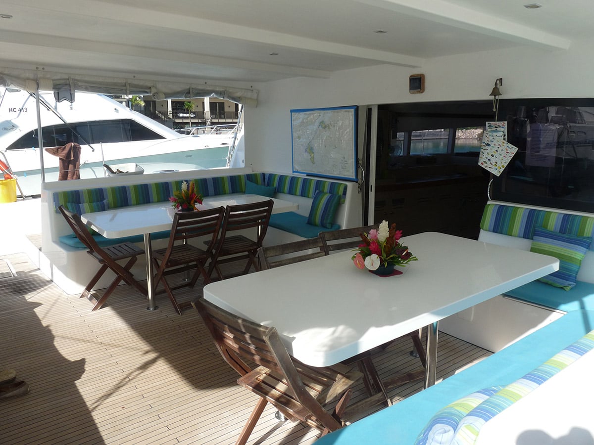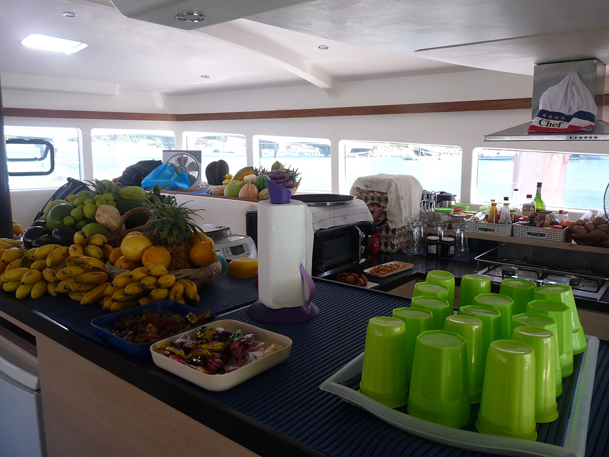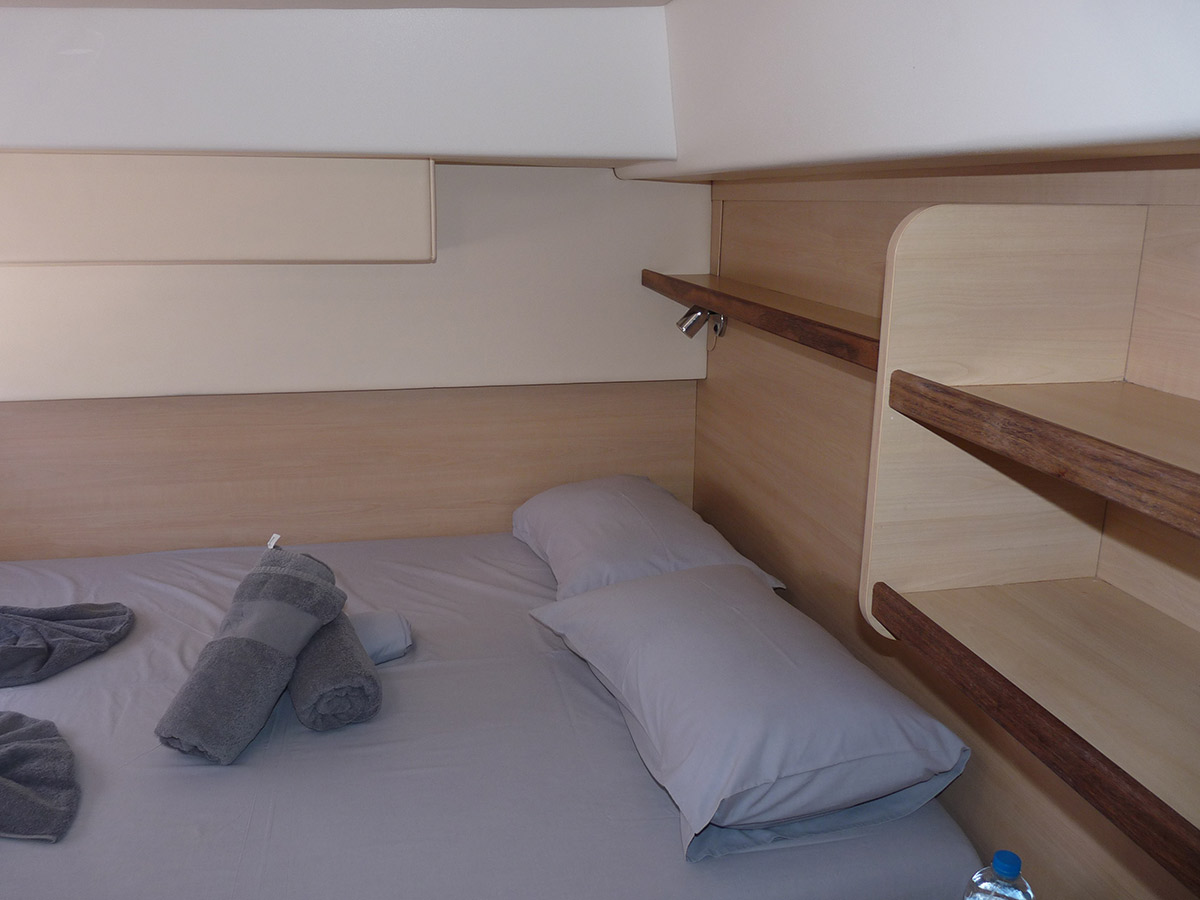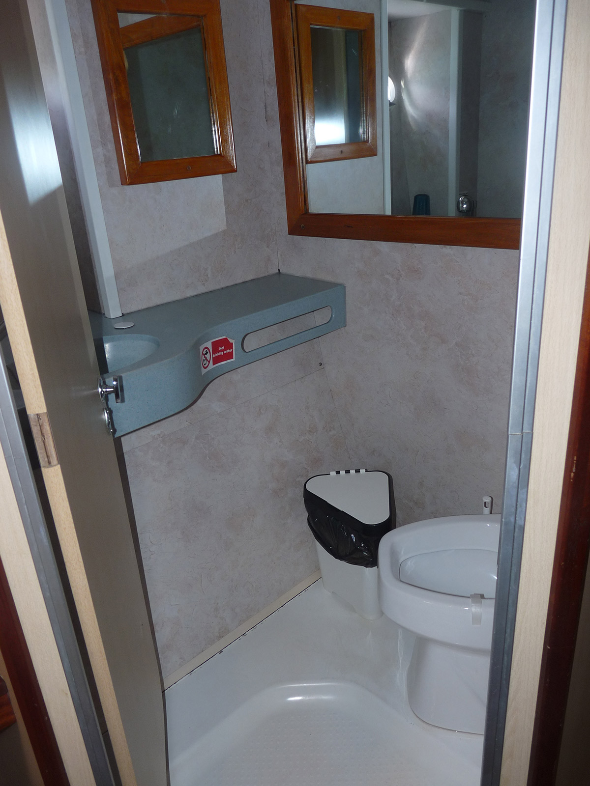 Wir haben sieben Tage auf einem Katamaran mit zwölf Kabinen übernachtet. Jede Schlafkabine verfügte über ihr eigenes Bad mit Dusche und WC. Erst war ich etwas skeptisch, was die Übernachtung auf dem Boot anging, da ich auch schon seekrank geworden bin. Das war hier allerdings nicht der Fall, der Katamaran lag im Gegensatz zu einem Einrumpfboot sehr ruhig im Wasser, was für einen großen Reisegenuss sorgte.