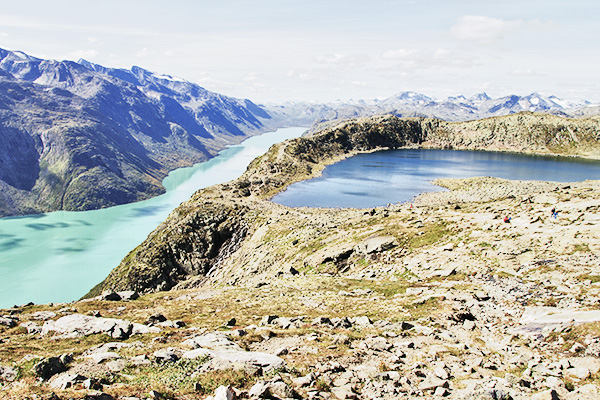 - Highlights: Aussicht vom Veslfjellet, grüner Gjende-See, blauer Bessvatnet-See