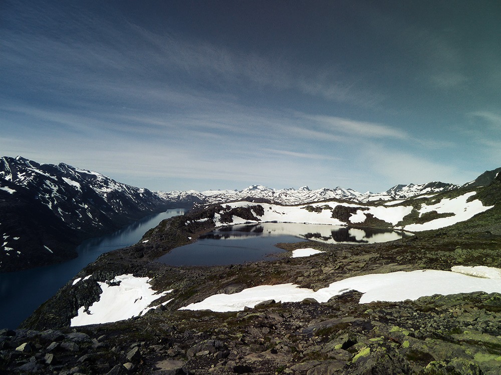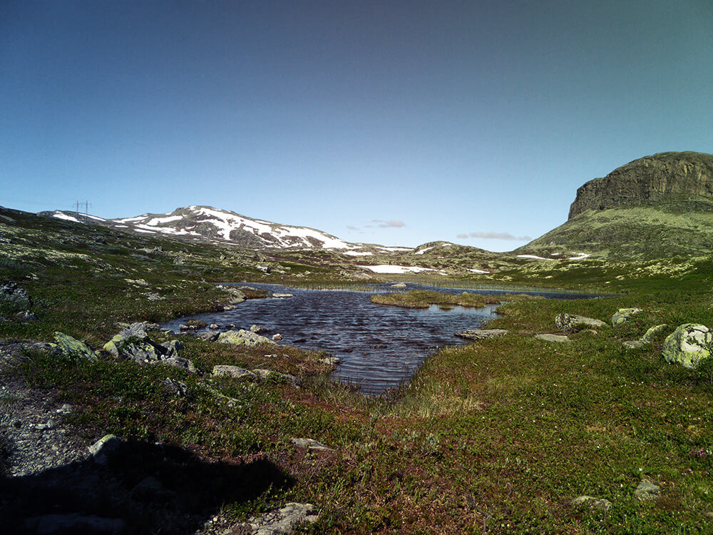 Am liebsten ist er hier, im Jotunheimen-Nationalpark, der vielleicht gebirgigsten Region Skandinaviens. „Jotunheimen“ ist Norwegisch und heißt übersetzt „Heim der Riesen“. Ursprünglich kommt der Begriff aus der Mythologie; Jötunheim war der Ort, an dem die Riesen der nordischen Sagen wohnten, geografisch war das aber nicht näher lokalisiert. Auf einer Fläche von 3.500 Quadratkilometern gibt es hier gleich 250 Gipfel, die höher als 1.900 Meter sind, 20 Gipfel gehen sogar auf über 2.000 Meter Seehöhe hinaus.
