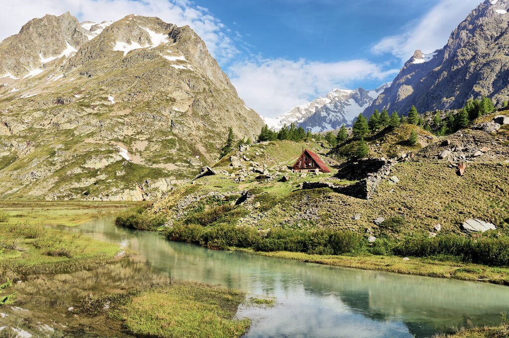 <Mit dem Aufstieg zum Col Ferret steht auf der 6. Etappe deiner Aktivreise einer der herausforderndsten Anstiege der Tour bevor. Zunächst führt dich der Weg zum Rifugio Bonatti, das nach dem berühmten Bergsteiger Walter Bonatti benannt wurde. Von dort aus dauert es etwa drei Stunden, um den Pass zu überqueren und in das malerische Schweizer Val Ferret zu gelangen. Die Aussicht auf den imposanten Grand Combin ist schlicht atemberaubend. Die Nacht verbringst du in der gemütlichen Gîte Alpage de La Peule, bevor es am nächsten Tag weiter nach La Fouly geht.