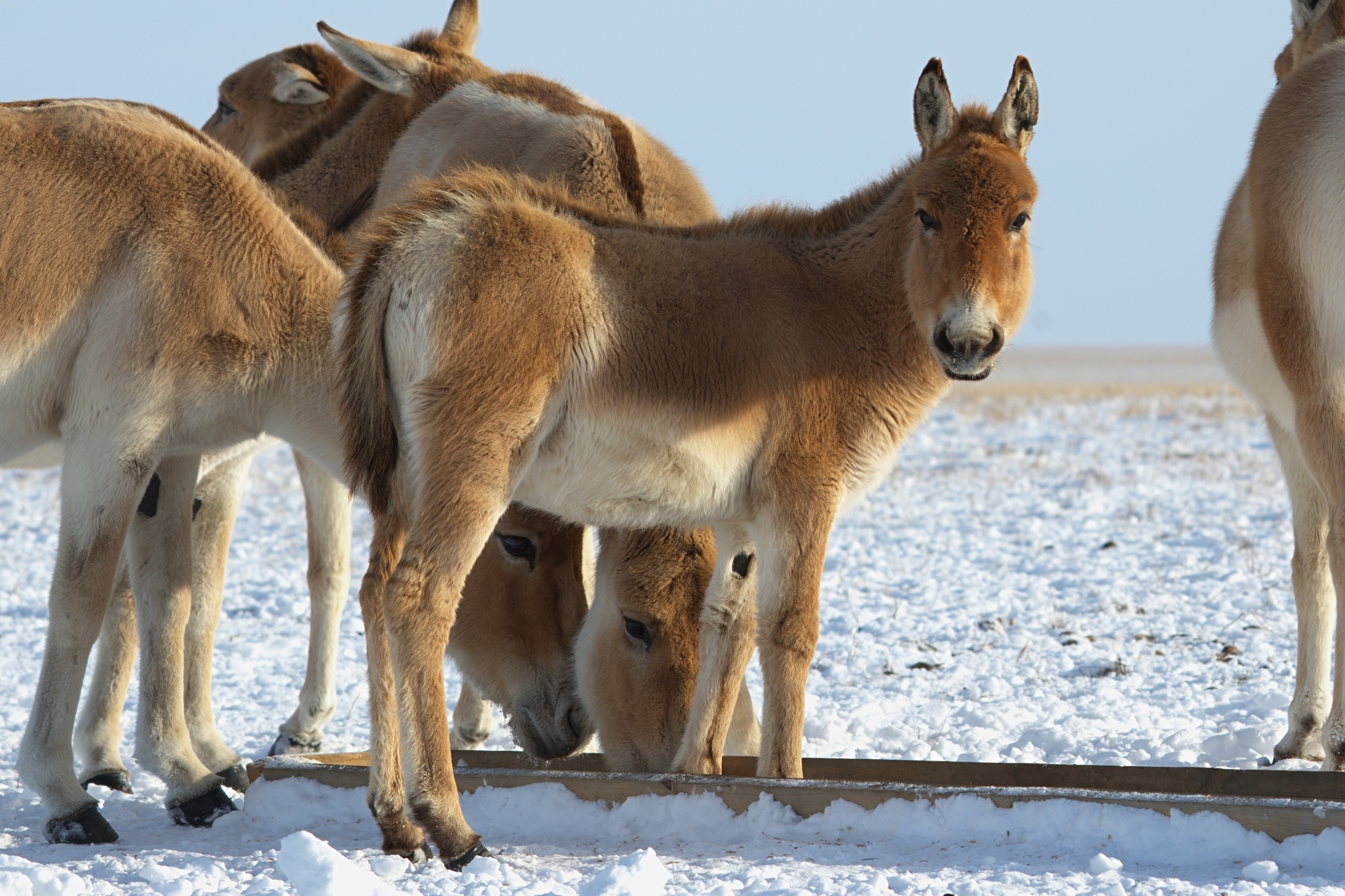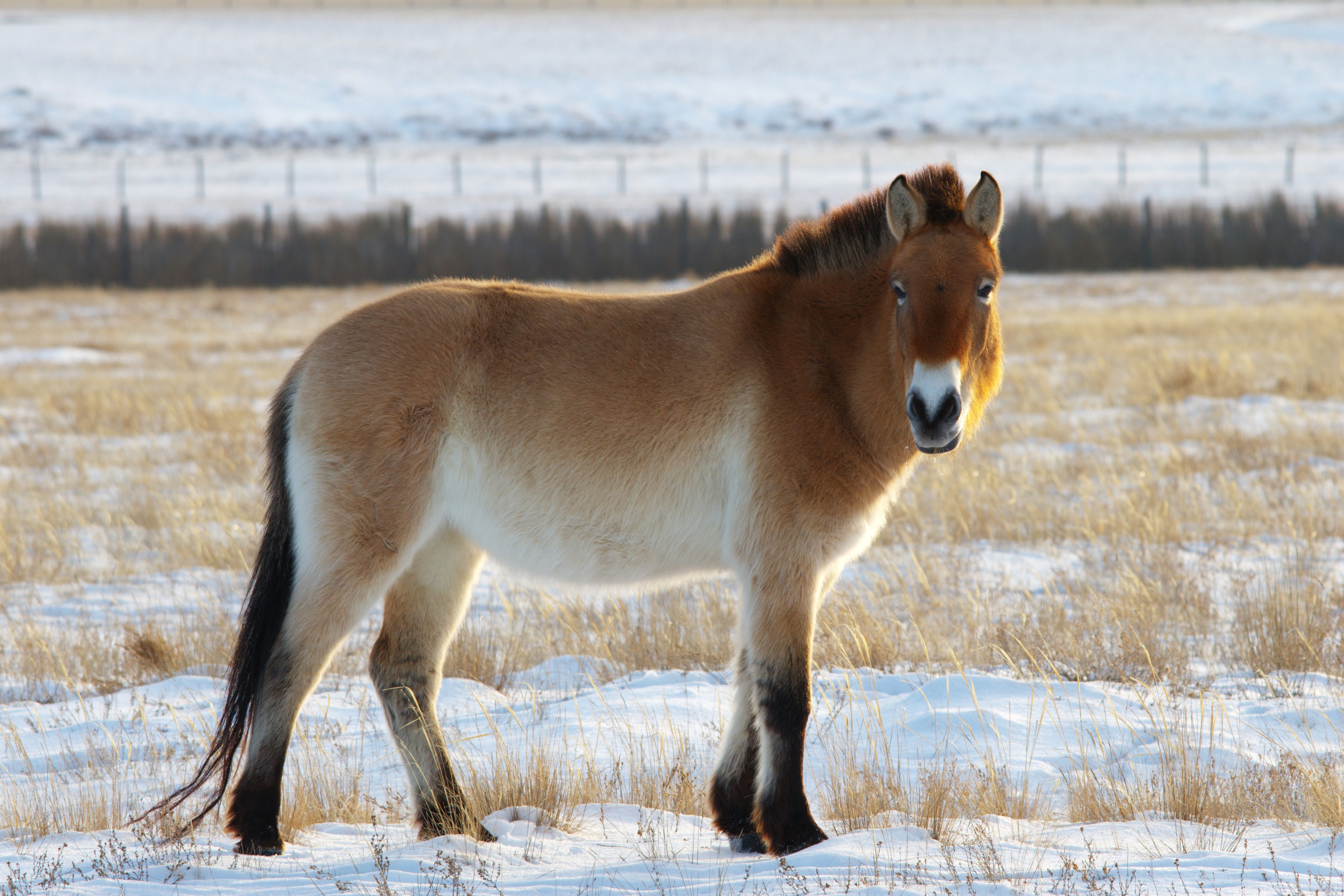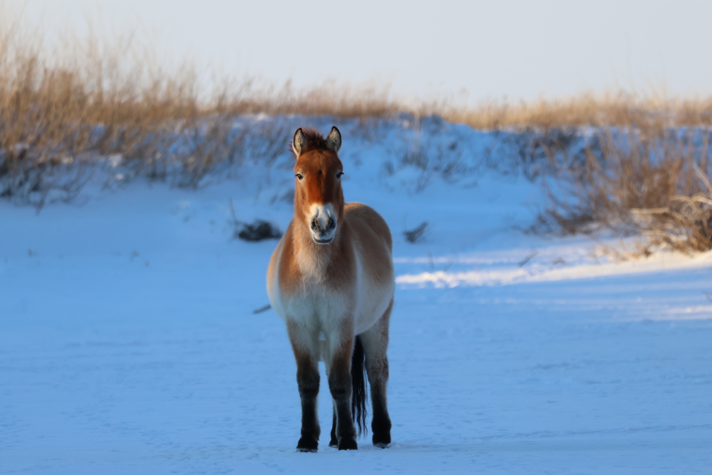 Während rund um das Büro der ZGF in Frankfurt schon die ersten Krokusse sprießen, ist es in der Heimat der Wildpferde und Kulane aktuell noch richtig frostig. Aber auch für die tapferen Neuankömmlinge im Wiederansiedlungszentrum Alibi geht langsam der erste Winter in der Goldenen Steppe zu Ende. Dank engmaschigem Monitoring und bedarfsorientiertem Zufüttern von Heu und Pellets befinden sich alle Przewalski-Pferde und Kulane trotz zweitweiser Tiefsttemperaturen von bis zu -27° Celsius und dicker Schneedecke in sehr guter Kondition. Auch das Gehege selbst ist nach unseren umfassenden Reparatur- und Erweiterungsarbeiten vor dem Wintereinbruch in stabiler Verfassung und hat zum bestmöglichen Management der Tiere beigetragen. Das flauschige Fell, das die Wildtiere auch bei arktischen Temperaturen wärmt, kommt auf diesen Bildern gut zur Geltung: