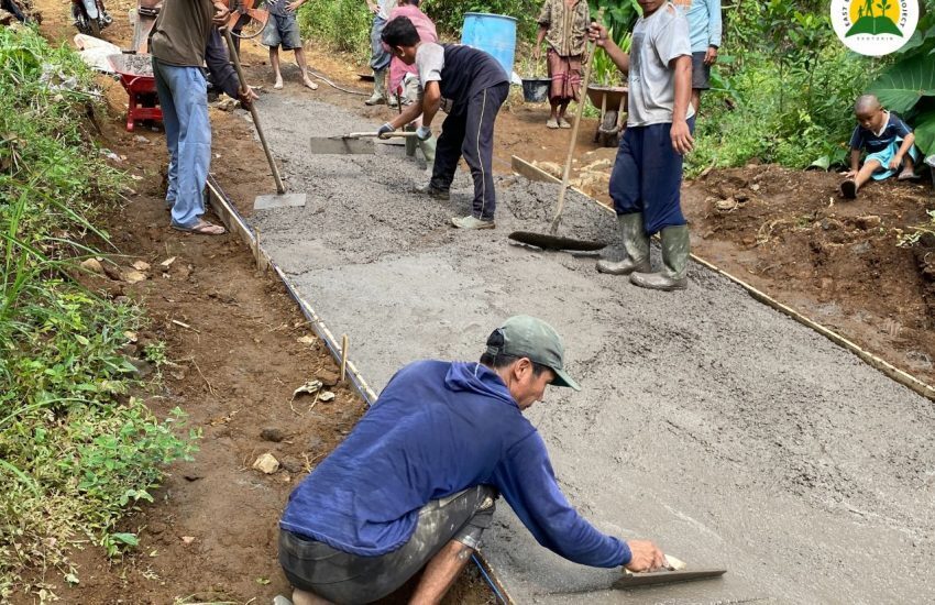 Heute werden die Betonierungsarbeiten offiziell von „gotong royong“, einer Gemeinschaftsarbeit die in Gruppen aufgeteilt ist, durchgeführt. Jede Gruppe arbeitet täglich abwechselnd von 8:00 bis 11:00 Uhr. Dies ist mehr als nur eine einfach Straße wie wir sie kennen – es ist ein Weg der Zukunft für die Menschen vor Ort.