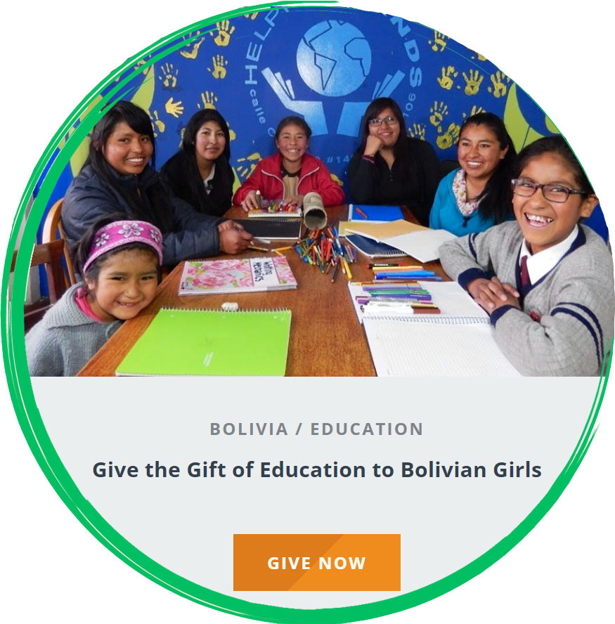 Das Projekt „Helping Hands“ wurde ins Leben gerufen, um Jugendlichen mit sehr geringen ökonomischen Ressourcen, die Möglichkeit zu geben schulische und soziale Hilfe zu erlangen. Bitte besuchen Sie unsere Webseite: www.helpinghands-bolivia.org