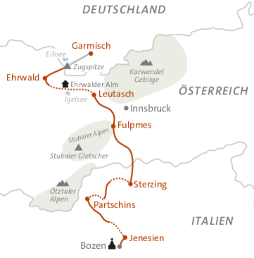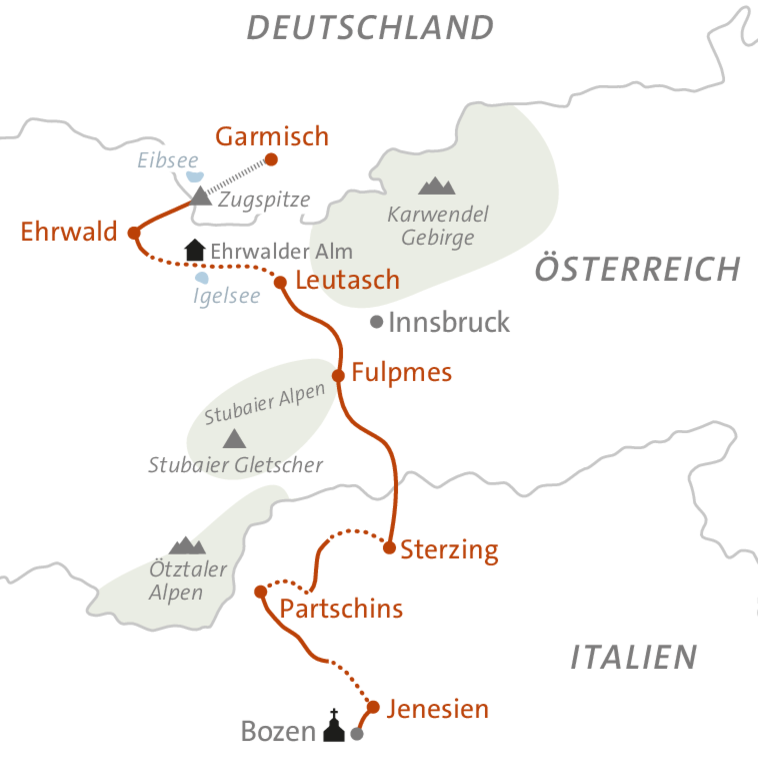 - Transfer zum Ausgangspunkt nach Mölten an Tag 7