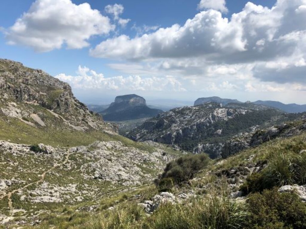 <Wir verlassen das Dorf und kommen auch bald an den ersten Mantelplantagen und Weinfeldern vorbei. Auf einem ehemaligen Karrenweg steigen wir durch den Wald bergauf, bis wir auf dem Gipfel ankommen. Nach einer ausgiebigen Gipfelrast geht es weiter durch das einsame Nachbartal, bis wir wieder in Alaró ankommen. -