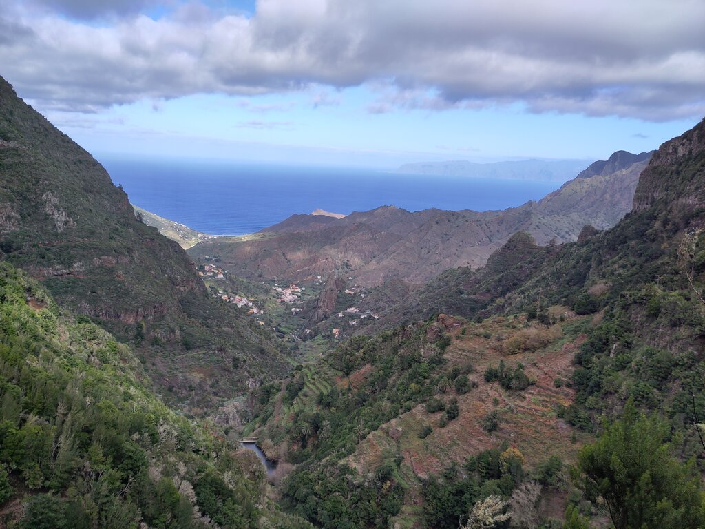 <Nördlich von Hermigua wandern Sie durch verlassene Siedlungen entlang der schroffen Küste. Sie blicken hinüber nach Teneriffa und den Teide, auf dem Sie noch vorgestern selbst unterwegs waren. Gut markierte, breite Forststraßen und gepflasterte Fußwege mit Holzgeländer führen Sie über teils ausgesetzte Stellen. Am Ende Ihrer Rundtour spazieren Sie durch Papaya- und Mangofelder. -